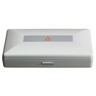 The HEINE S-FRAME Clip-in correction frame accessory comes with clear glass lenses. Your optometrist exchanges the clear lenses with your own personal corrective lens prescription. The insert then quickly and easily clicks inside your S-FRAME lenses.